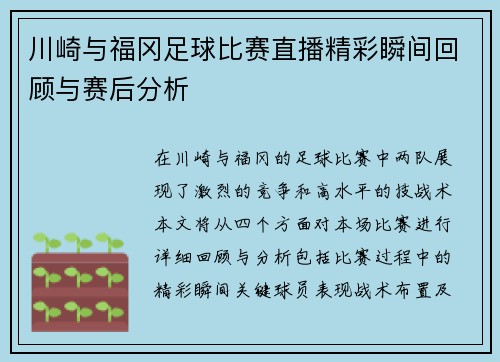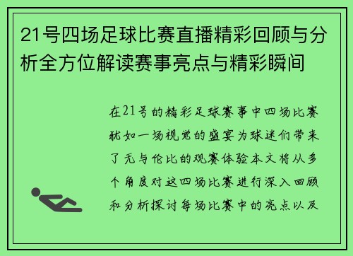 在这篇文章中,我们将全面回顾大连珂缔缘足球比赛的精彩瞬间,并进行赛后的深入分析。通过直播中的关键时刻,观众们能够感受到比赛的紧张氛围和激烈对抗。我们将从四个方面进行剖析:比赛前的准备与战术布局、比赛中的精彩瞬间、球员表现与战术执行、以及赛后总结与未来展望。每个方面都将提供详细的信息和分析,以便读者更...