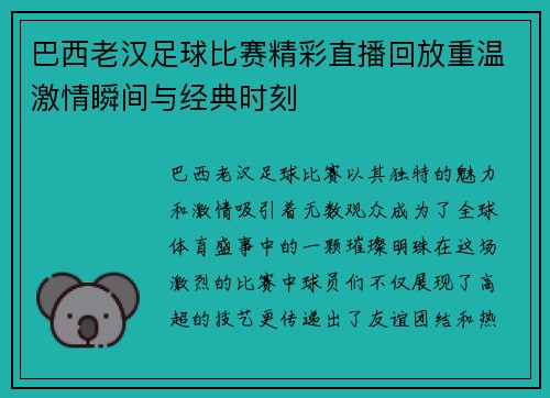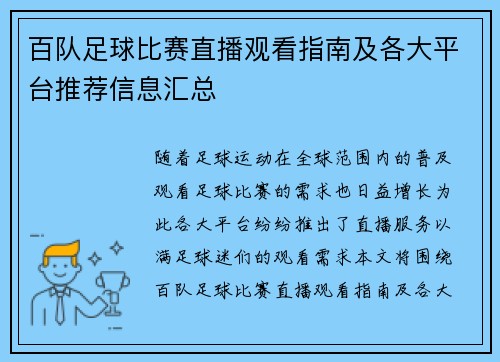 随着足球运动的蓬勃发展,越来越多的球迷希望能够通过便捷的平台观看精彩的赛事。爱奇艺作为国内知名的视频平台,凭借其强大的技术支持和丰富的内容资源,为广大足球爱好者提供了直播免费观看服务,成为了不容错过的最佳选择。本文将从四个方面详细阐述爱奇艺足球比赛直播免费观看的优势,包括丰富的赛事资源、优质的直播体...