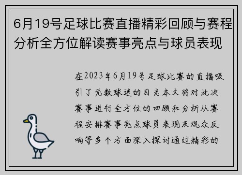 6月19号足球比赛直播精彩回顾与赛程分析全方位解读赛事亮点与球员表现